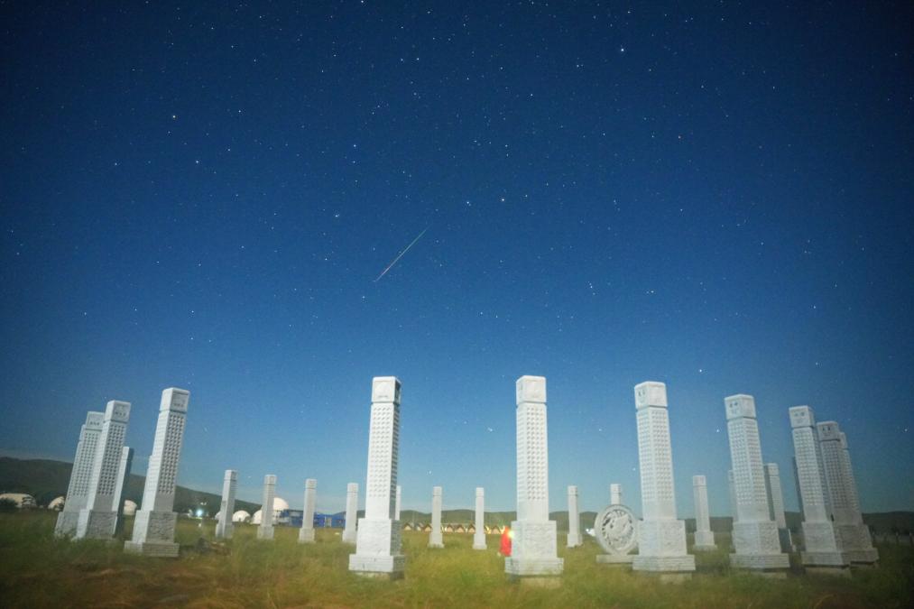 8月13日凌晨,在内蒙古锡林郭勒盟正镶白旗拍摄的英仙座流星雨。(刘凯 摄)