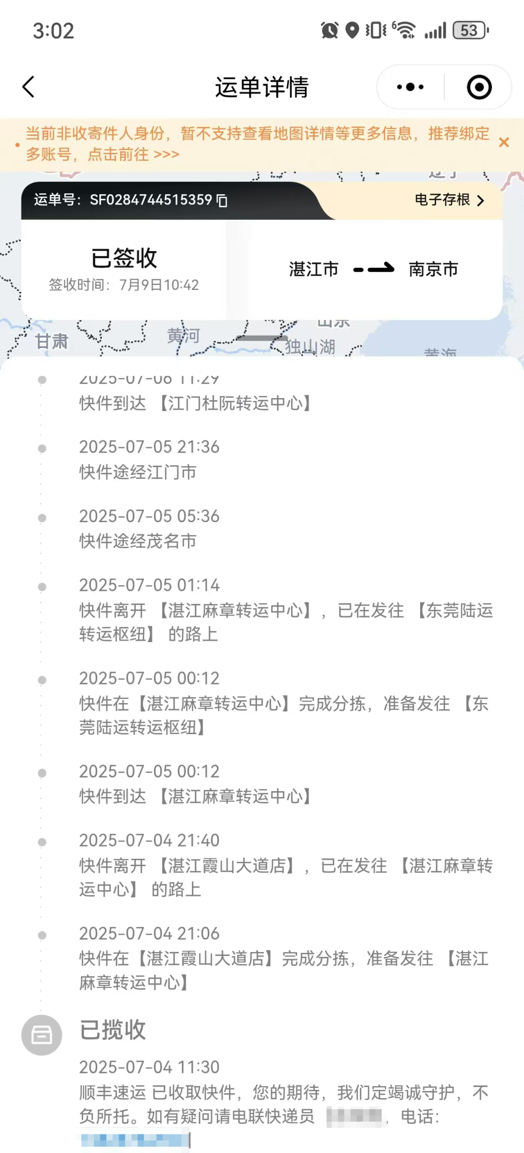 接到郭先生投诉后,澎湃新闻致电顺丰速运,工作人员表示,已派专员协商赔偿方案,目前仍在处理阶段。