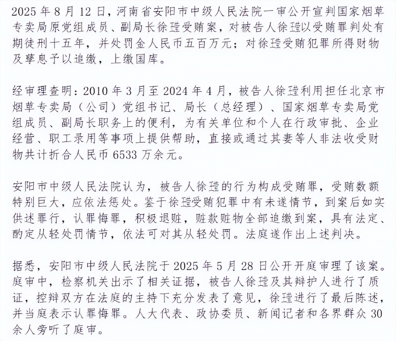 国家烟草专卖局原副局长,被判15年