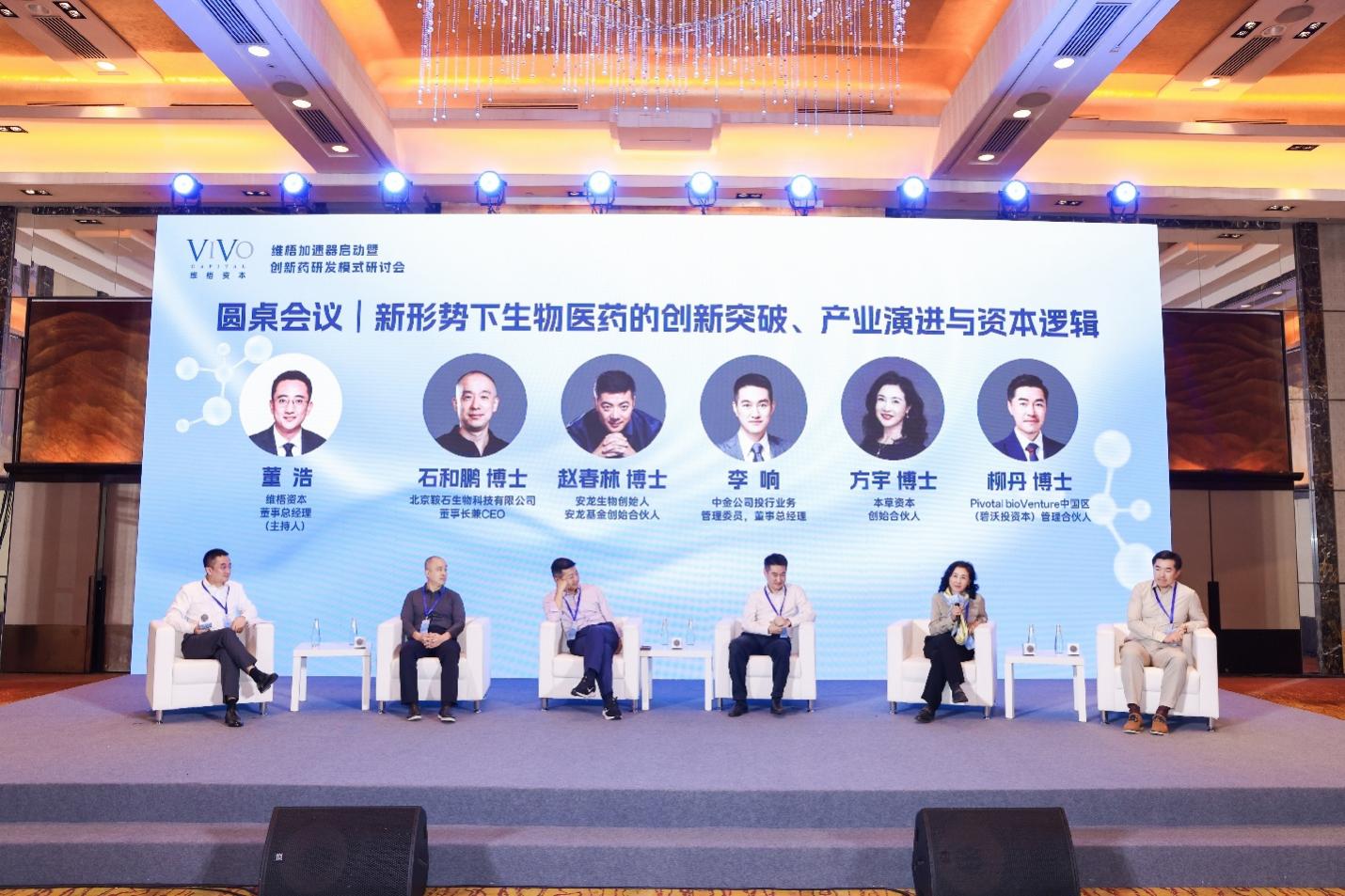 圆桌二邀请了鞍石生物董事长石和鹏博士,安龙生物创始人赵春林博士,中金公司投行业务管理委员、董事总经理李响先生,本草资本创始合伙人方宇博士,碧沃投资本管理合伙人柳丹博士,就新形势下生物医药的创新突破、产业演进与资本逻辑进行了不同角度的分享。
