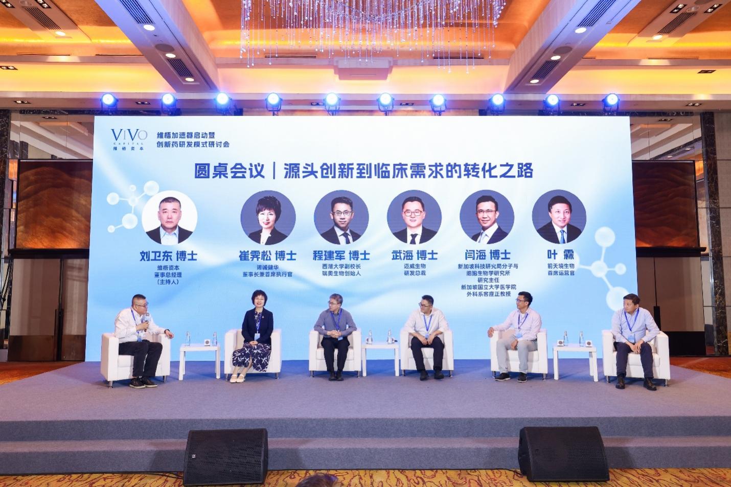 圆桌一邀请了诺诚健华董事长兼首席执行官崔霁松博士,瑞奥生物创始人、西湖大学副校长程建军博士,迈威生物研发总监武海博士,新加坡A-star研究所研究主任、新加坡国立大学客座教授闫海博士,前天境生物首席运营官叶霖先生,就源头创新到临床需求的转化之路进行了深入讨论。