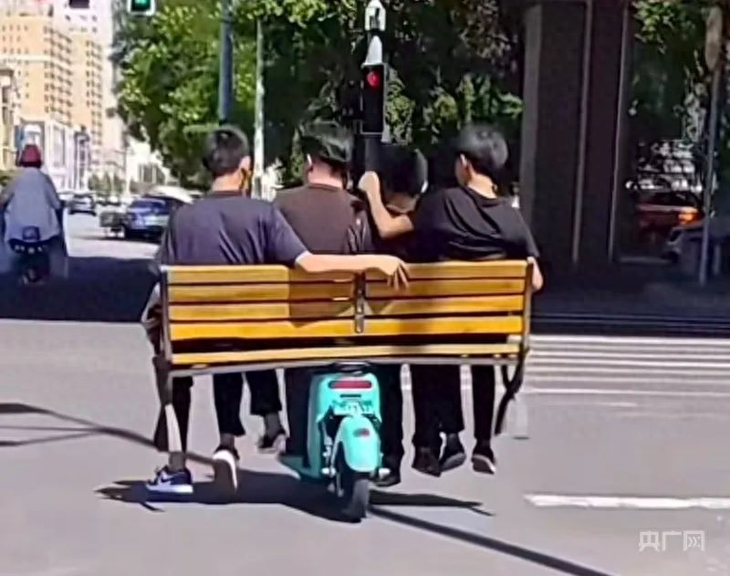近日,内蒙古呼和浩特,有网友在街头拍到一辆单人共享电动车上乘坐了4人,引发关注。视频显示,共享电动车座位上被放置一张长椅,4名男子坐在长椅上骑行,十分危险,网友纷纷呼叫交警部门处理。