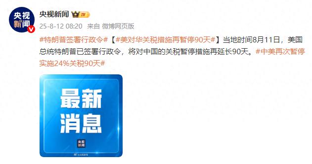 当地时间8月11日,美国总统特朗普已签署行政令,将对中国的关税暂停措施再延长90天。
