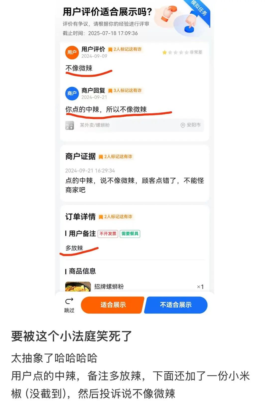 记者曾关注到,当下,在外卖、二手交易等线上平台,由于买卖双方各执一词,有年轻人化身“赛博判官”(在一些网络平台上受邀评判评论合理性、交易纠纷等的大众评审员——记者注),面对“公说公有理,婆说婆有理”的场面,作出自己的判断。