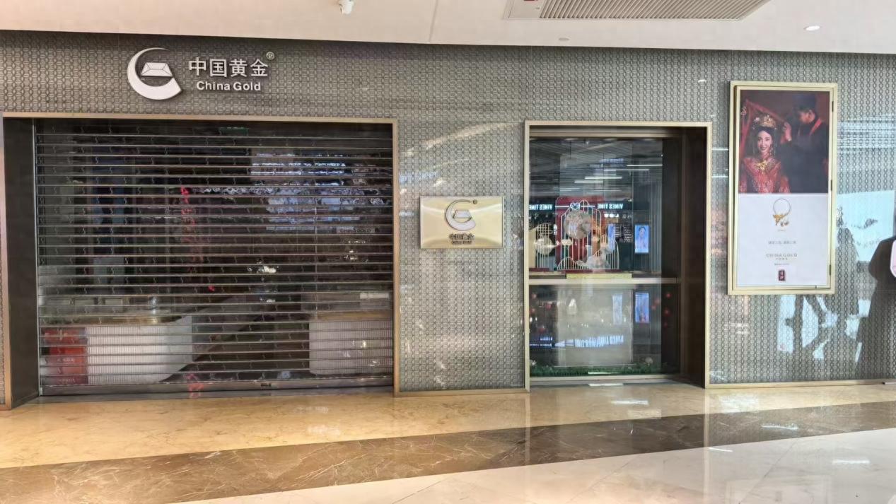 8月7日,正常工作日,郑州市高新区公园茂,一家中国黄金门店关闭,周边商家告诉记者其已停业。