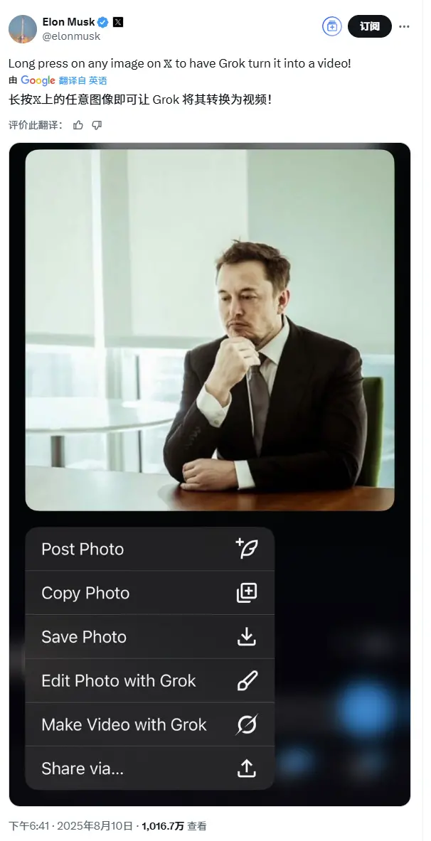此外,xAI近期刚发布的AI驱动图像和视频生成器Grok Imagine,已从原订阅用户专属服务转为iOS和Android应用端免费提供,进一步降低了用户加入xAI生态系统的门槛。Grok Imagine可以用文字生成图像,然后将图一键变成AI视频,据马斯克介绍,该功能可以长按X平台上的任意图像让Grok将其转换为视频。同时,Grok 4还增强了PDF处理功能,使其在文档类任务中的实用性得到扩展。