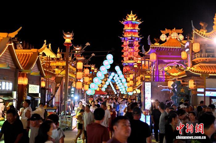 8月7日晚,吉林辽源,游客在悦动辽源欢乐荟游览。中新社记者 张瑶 摄
