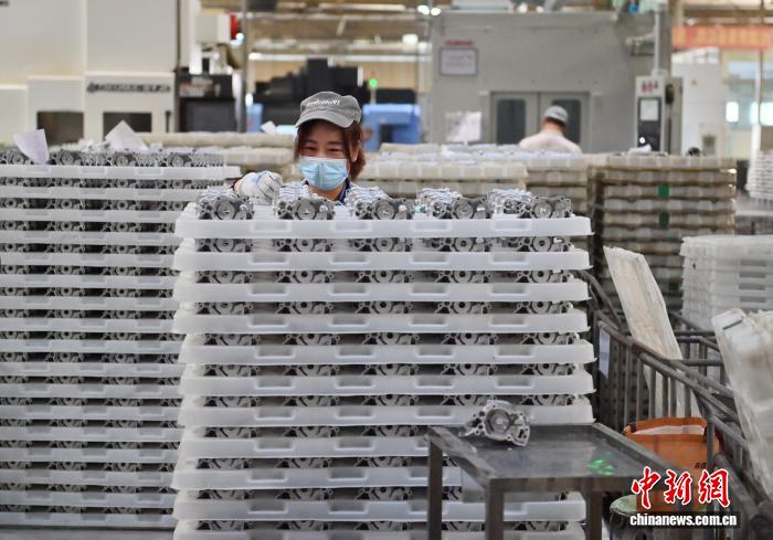 8月8日,吉林辽源,富奥汽车零部件股份有限公司泵业分公司工人正在整理零件。中新社记者 张瑶 摄