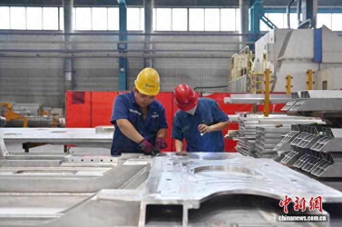 8月8日,吉林辽源,启星铝业的工人正在检查铝件。中新社记者 张瑶 摄