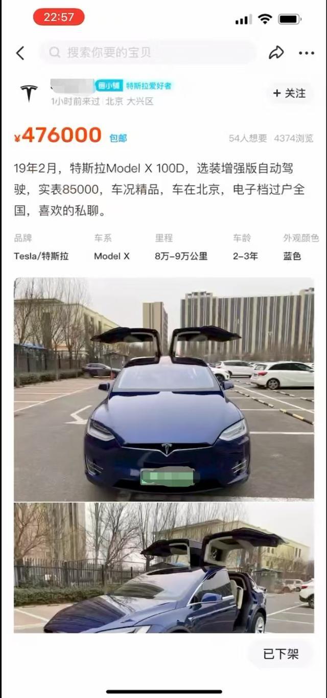 2022年2月,赵先生想入手一辆二手特斯拉Model X。在闲鱼上刷到于某的信息时,他眼前一亮:这辆2019年的Model X100D,表显里程8.5万公里,标注"车况精品",报价46.2万元。