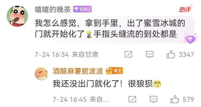 有网友表示:“出了蜜雪冰城的门就开始化了,手指头缝流得到处都是。”甚至有网友说:“还没出门就化了!很狼狈。”