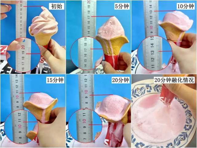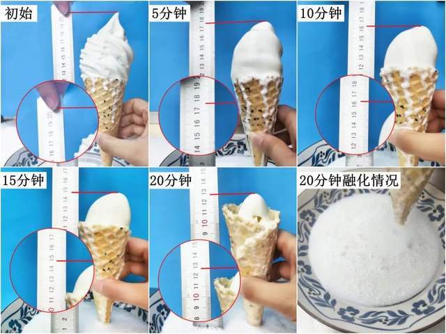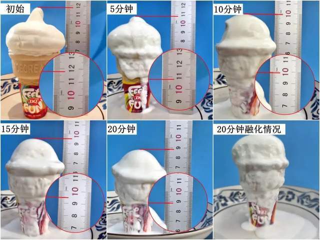 此外,用冰淇淋高度变化判断化得快不快,本身也有点不公平:有的冰淇淋尖打得高,稍微化点就显得变“矮”,有的冰淇淋尖打得矮,变化自然就不明显。