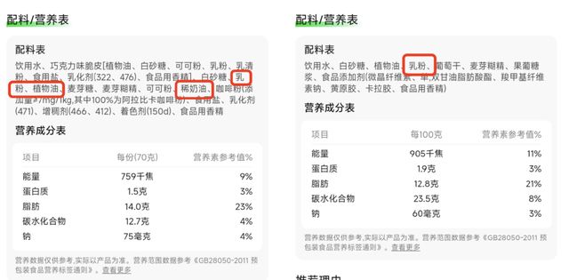 不同品牌、口味的雪糕添加的油脂不同|图源:小象超市截图