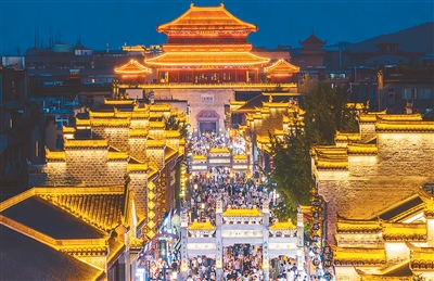 游客夜游湖北襄阳古城,品美食、赏夜景。杨 东摄(人民图片)