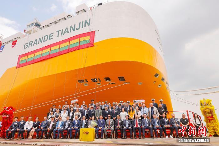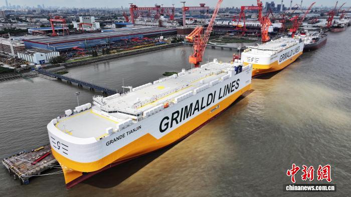 8月8日,由中国船舶集团有限公司旗下上海外高桥造船有限公司为意大利Grimaldi公司建造的首艘9000车位汽车运输船“GRANDE TIANJIN”号命名交付。
