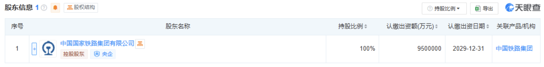 股东信息显示,该公司由中国国家铁路集团有限公司全资持股。