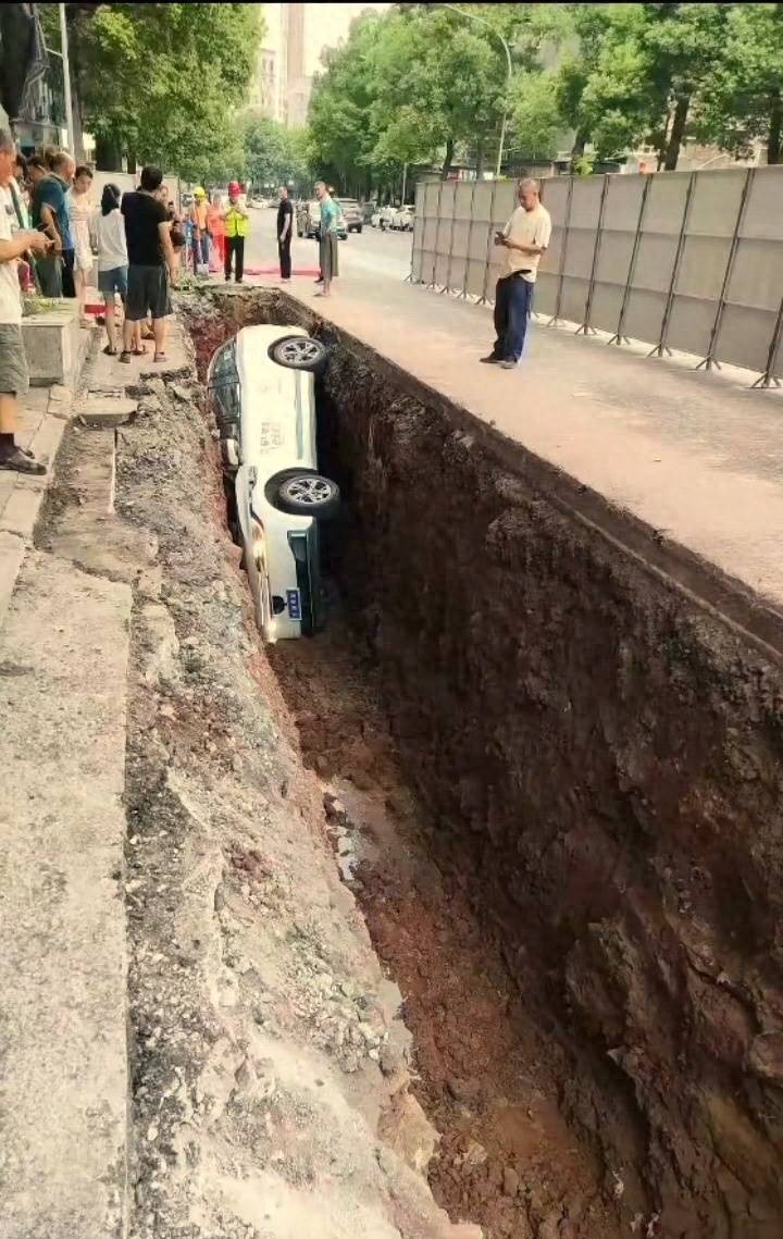 “6日早上才开始挖,有辆货车刚开出去几秒钟,这辆‘萝卜快跑’车就开了进来,直接掉进坑里。”