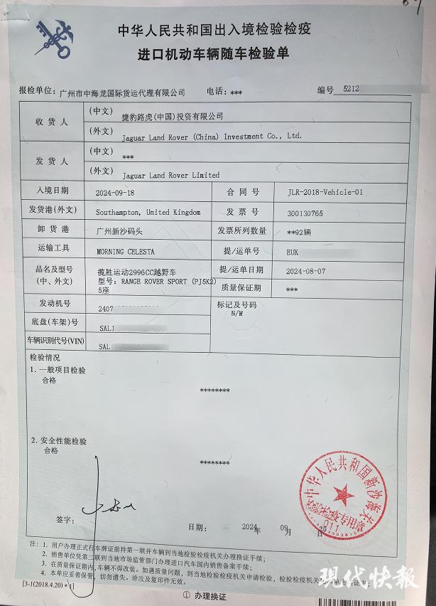 周先生的路虎车进口检验单