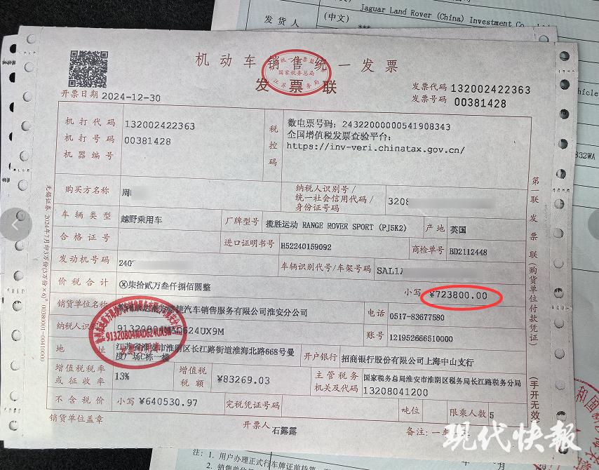 周先生在淮安的路虎4S店花费72万余元购入一辆路虎揽胜运动越野车,加上购置税、保险以及新车装饰等,一共花费了近90万元,为此他还贷款了60万元。本以为能享受高端车型的品质体验,却没想到陷入了一场质量纠纷。