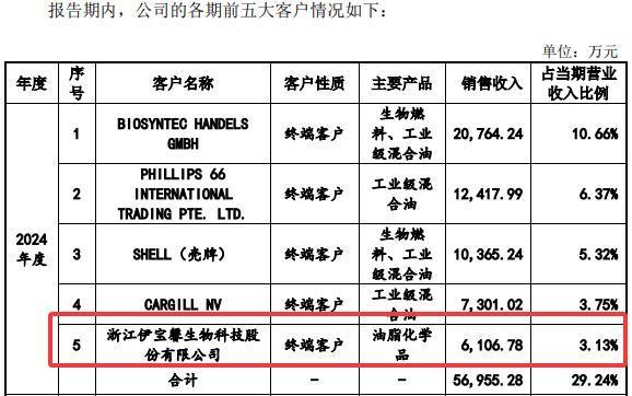 根据招股书,2024年丰倍生物来自伊宝馨的收入为6106.78万元,占当期营收入的比例为3.13%;而伊宝馨披露的2024年年报中,向第一大供应商的采购金额为5497.6万元。