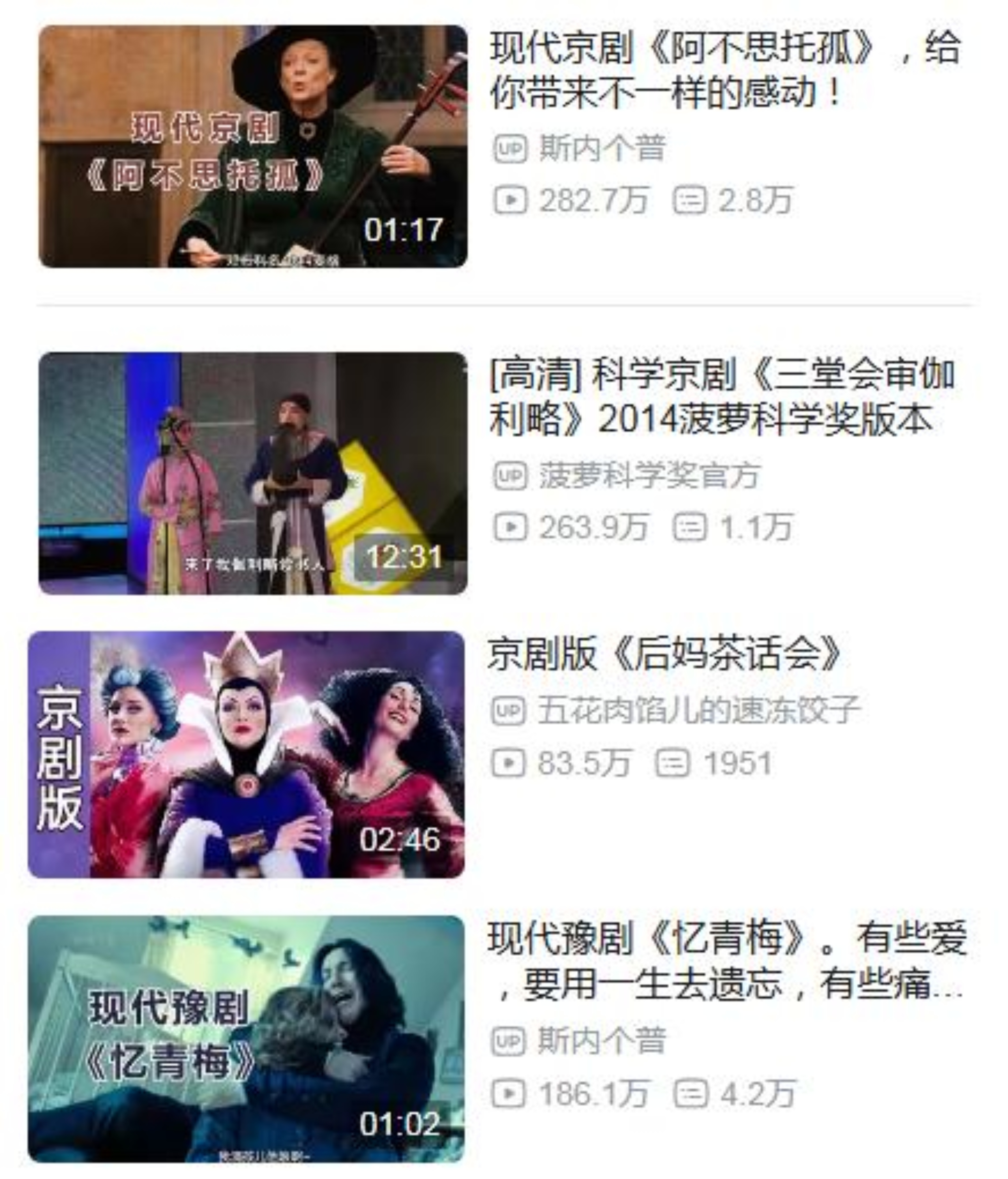 在某弹幕网站上,一段网友二创的京剧版《哈利·波特》斩获近千万播放量,“谁想到保密人来选错,詹姆奔地府,莉莉见阎罗”,京韵京腔搭配西方魔幻,让人忍俊不禁;同一平台上,京韵大鼓版《指环王》、豫剧版《霍格沃兹在朝阳沟》、京剧唱段《三堂会审伽利略》等作品,亦巧妙地将西方经典IP嫁接到东方戏曲的根脉上,总能戳中网友笑点。