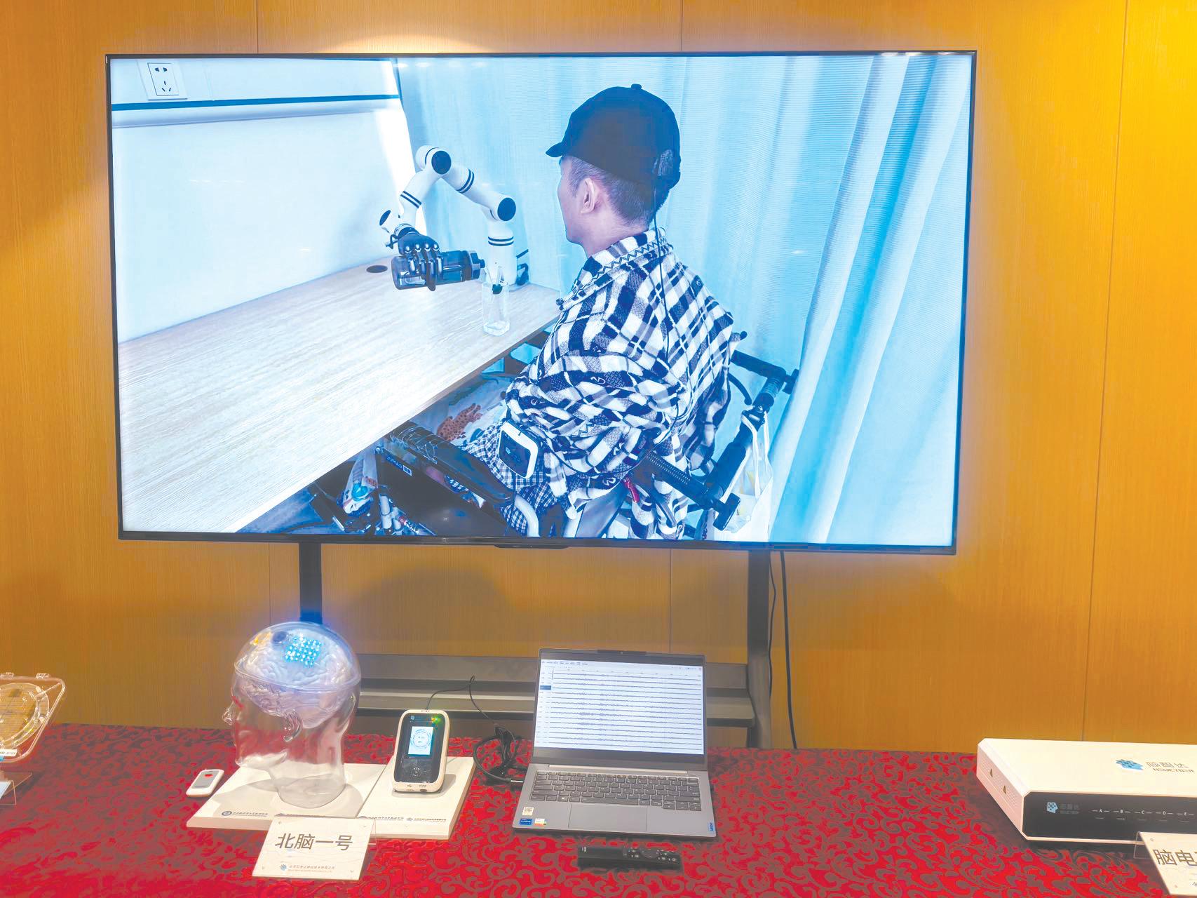 手术后的患者正通过“北脑一号”脑机接口控制机械臂