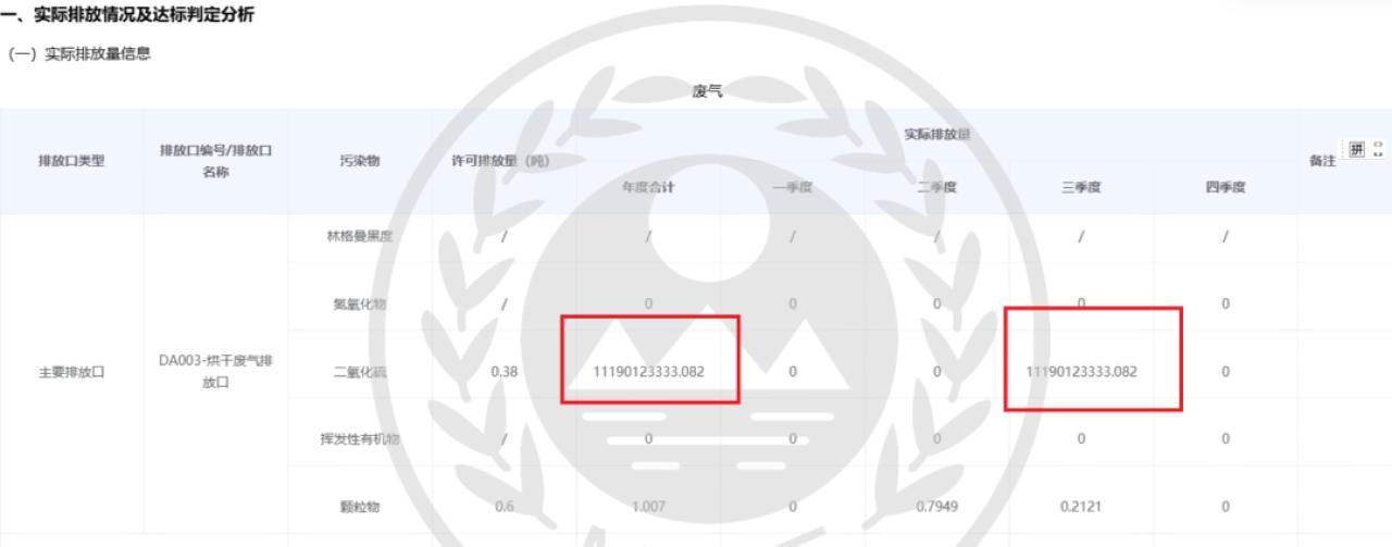 云南一个边疆县城,一家只生产木炭、薪柴的小微企业,2024年7-9月竟“排放”了111.9亿吨二氧化硫,而许可值仅0.36吨,超标311亿倍。企业赫然将其写入年度排污许可执行报告,原本为了“自证清白”,却因离谱的数据差错惹来争议。