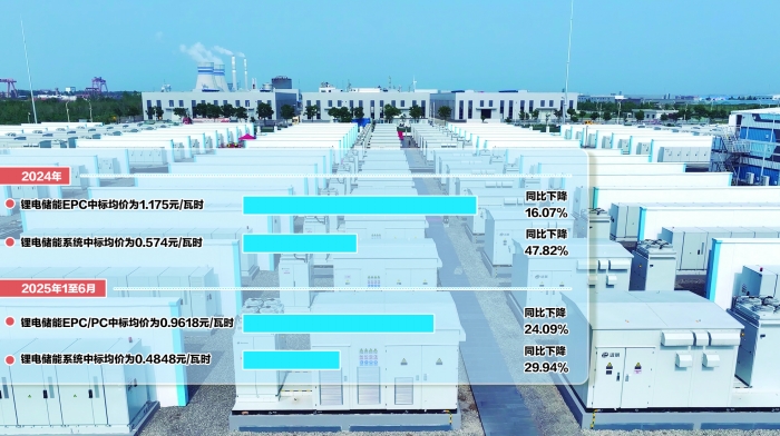 据CESA储能应用分会产业数据库不完全统计,2024年锂电储能EPC中标均价为1.175元/瓦时,同比下降16.07%;锂电储能系统中标均价为0.574元/瓦时,同比下降47.82%。2025年1至6月,锂电储能EPC/PC中标均价为0.9618元/瓦时,同比下降24.09%;锂电储能系统中标均价为0.4848元/瓦时,同比下降29.94%。