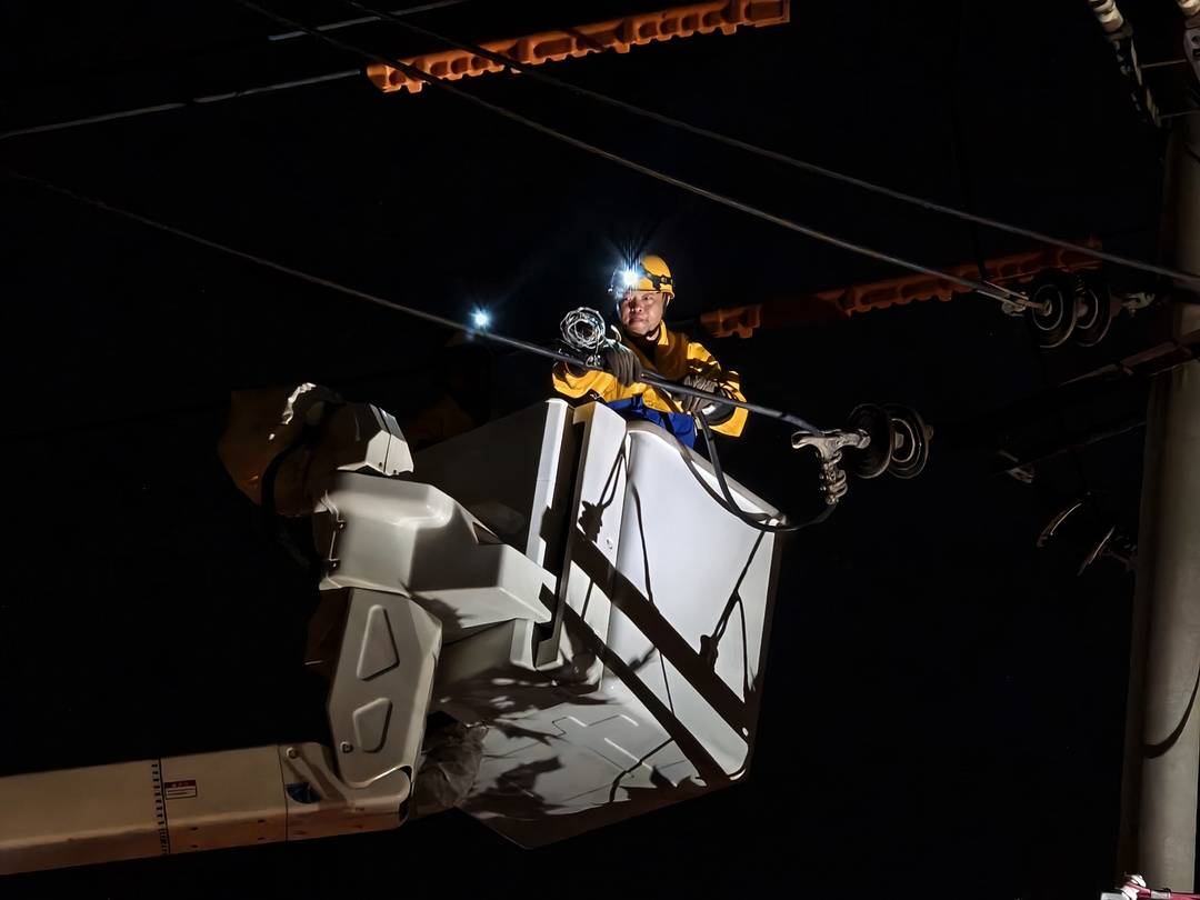 带电作业人员在深夜开展设备隐患消除工作。(严从俊 摄)