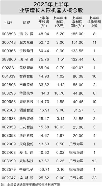 据证券时报·数据宝统计,目前布局人形机器人产业链的概念股多达120只。截至8月5日,已公布2025年半年报业绩数据的概念股中,净利润同比增长20%及以上或扭亏为盈(业绩预告取下限数据)的有18股,其中,天奇股份、麦迪科技、埃斯顿、中京电子、爱仕达等预计扭亏为盈。