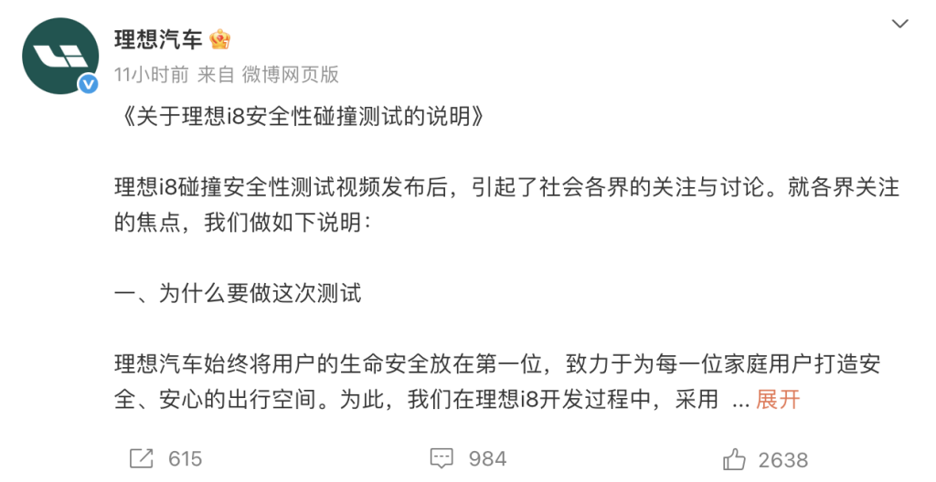 不过也有业内人士提出,监管给出的“必答题”,企业都已顺利通过才有上市资格。而类似理想i8进行的对撞测试,可以理解为汽车安全“选答题”,“卷测试也是在卷安全,企业没有虚假宣传即可”。