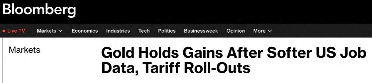 金价交易价格在每盎司3360美元附近,前一交易日金价上涨2.2%,而股市则有所下跌。推动黄金价格跳涨的主要是两大因素:美国就业报告显示招聘大幅放缓,这引发了市场对降息的猜测;此外,涉及推出的贸易关税措施。