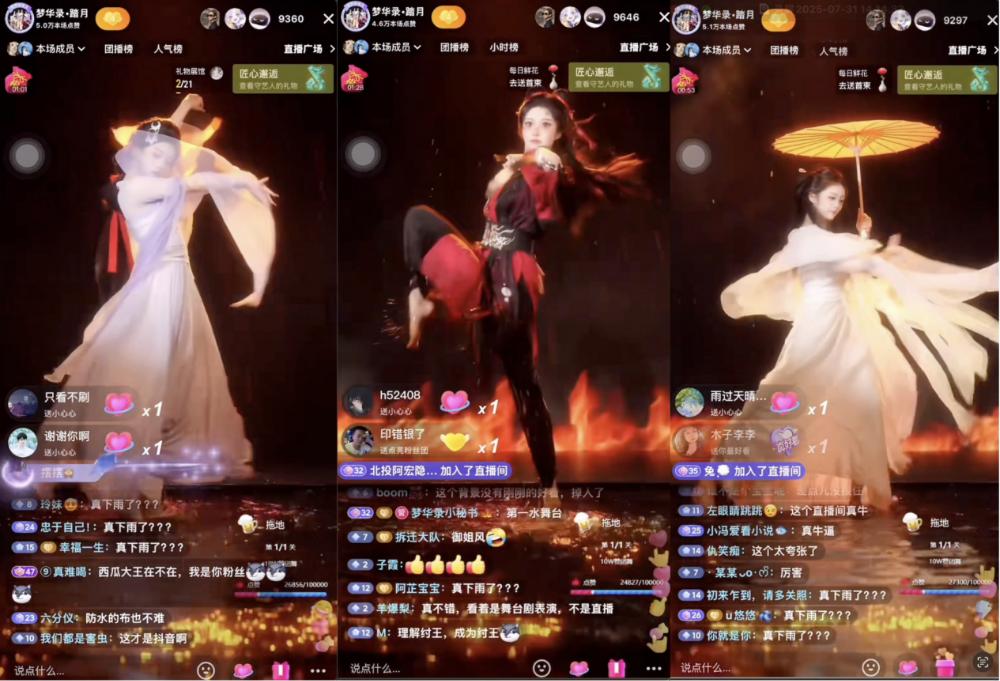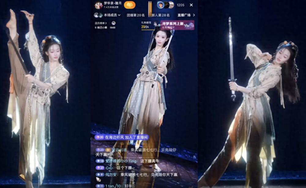 内容创作更是充满匠心。团队成员不再是模糊的“背景板”演员,而是各具鲜明国风人设的专业舞者:七七是“布衣剑客”,同事则分饰戏曲花旦、清冷师姐、魅惑妲己,甚至还有“哪吒”和“师尊”。道具按需定制,舞蹈编排日益复杂,专业的剑舞、扇舞被融入其中。这种沉浸式的专业体验,让观众直呼“抖音从未见过有真实水景的直播间”,是“降维打击”。