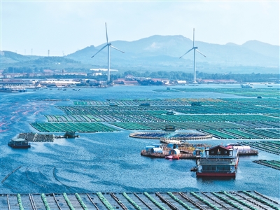 近年来,山东省荣成市积极创新推动海上风电与海洋牧场协同发展,形成“绿色能源+生态养殖+休闲渔业”的立体化生态产业模式,为当地海洋经济高质量发展注入强劲活力。图为荣成市石岛管理区桑沟湾海洋牧场。杨志礼摄(人民视觉)