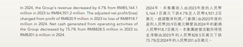 今年奈雪的茶动作频频,更换LOGO,推出新品,但是并没有挽救股价下跌的颓势,根据此前披露的2024年财报显示,2024年,集团收入由2023年度的51.641亿元下降4.7%至49.212亿元人民币。经调整净利润(亏损)由2023年度的盈利2090万元转为2024年的亏损9.187亿元人民币。集团经营活动所得现金净额由2023年的8.285亿元大幅下降75.7%至2024年的2.016亿元。