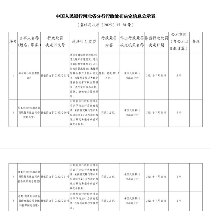 日前,中国人民银行河北省分行披露的一份行政处罚信息引发金融圈关注:廊坊银行因多项违规行为被处以195.7万元罚款,同时被给予警告处分。
