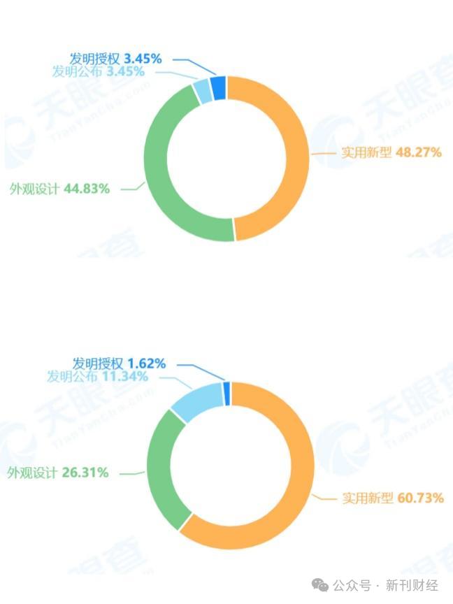 据天眼查数据显示,东莞徕芬和深圳术叶合计公开专利信息305项,但涉及核心技术的发明授权专利仅有6项,占比仅为1.97%。其中,东莞徕芬发明授权占3.45%,外观设计和实用新型分别占到44.83%和48.27%;类似的,深圳术叶发明授权仅占1.62%,外观设计和实用新型分别占到26.31%和60.73%。这表明徕芬在研发的取舍上,“短平快”的成果较多,而高含金量的成果较少。