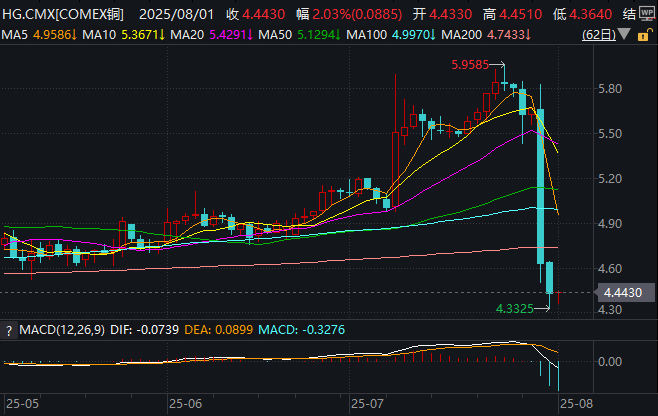 然而实际上,美国总统特朗普在当地时间周三下午只征收了有限的关税,并完全免除了铜的主要商品交易形式(例如铜矿石、精矿、锍铜、阴极铜和阳极铜)的关税,这导致纽约铜价在短短几小时内就跳水了22%。