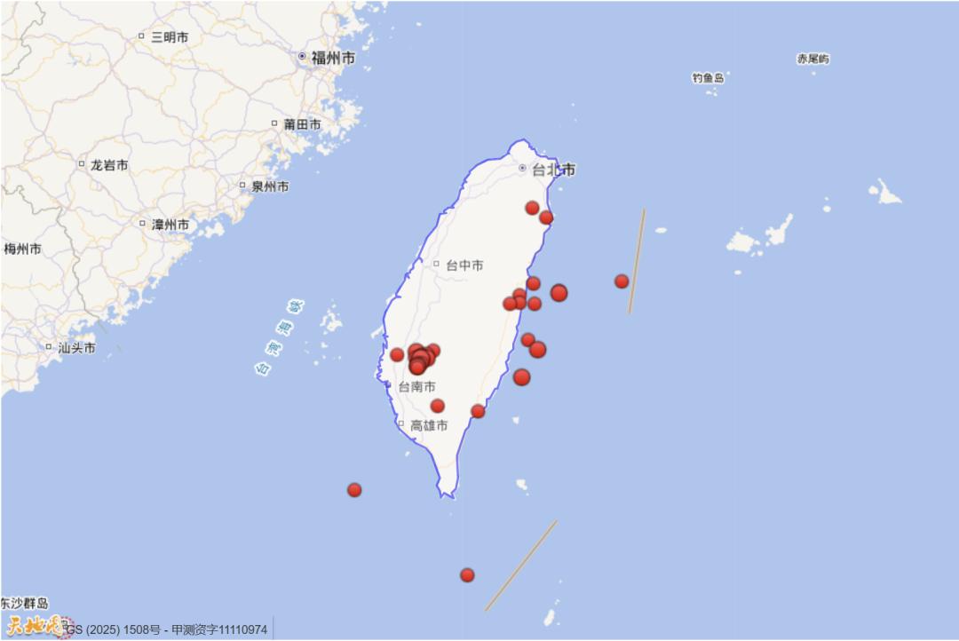 2025年以来(截至7月31日)台湾四级及以上地震活动分布图