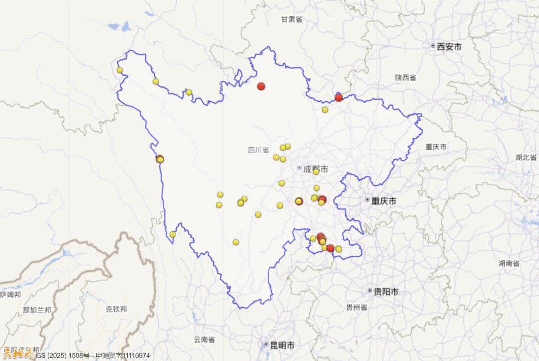 2025年以来(截至7月31日)四川三级及以上地震活动分布图(四级以上红色标注)