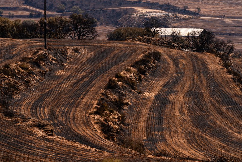 这是7月2日在西班牙列伊达拍摄的森林火灾中被烧毁的土地。新华社发(胡安·戈萨摄)