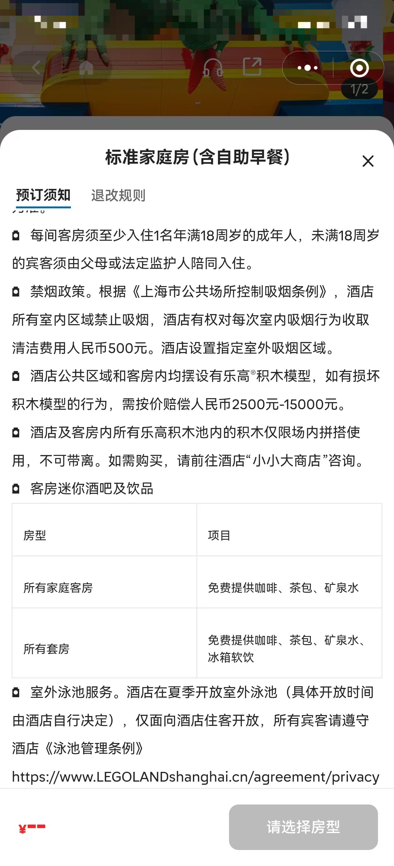 乐高乐园酒店相关入住规定截图。资料图片
