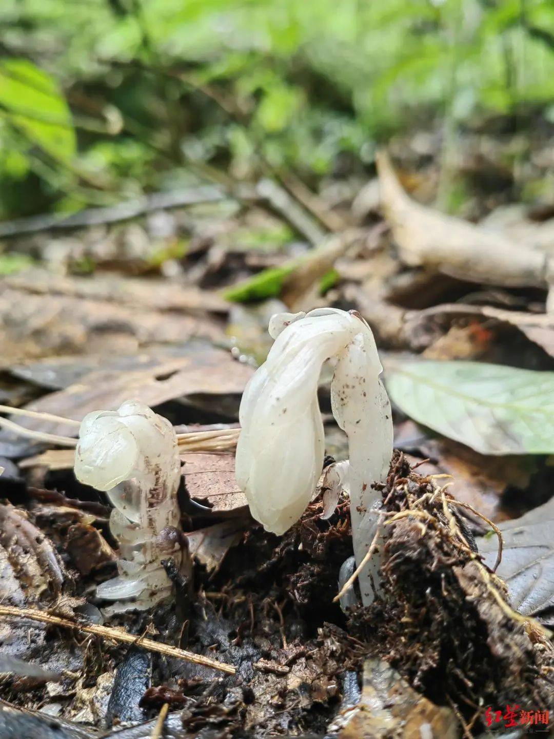 7月29日下午,四川昆虫学家、成都华希昆虫博物馆馆长赵力在云南哀牢山考察时,在原始森林区域内发现7株被称为“冥界之花”的罕见物种——水晶兰。
