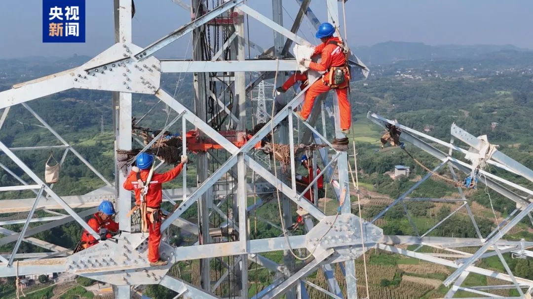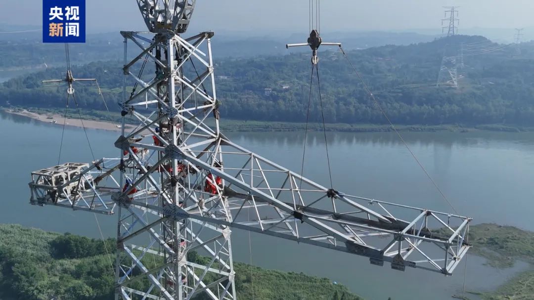 7月27日,哈密-重庆特高压直流受端500千伏配套工程3038号塔组立现场,随着最后一段横担在抱杆摇臂的牵引下缓缓上升到达指定位置,5名高空作业工人迅速就位并用螺栓紧固塔材,哈重配套工程两基跨江塔相继组立完成,分别以385.12吨和396.82吨重量,刷新了重庆市500千伏铁塔最重历史纪录。