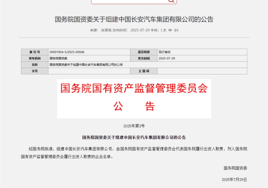 经国务院批准,组建中国长安汽车集团有限公司,由国务院国有资产监督管理委员会代表国务院履行出资人职责,列入国务院国有资产监督管理委员会履行出资人职责的企业名单。