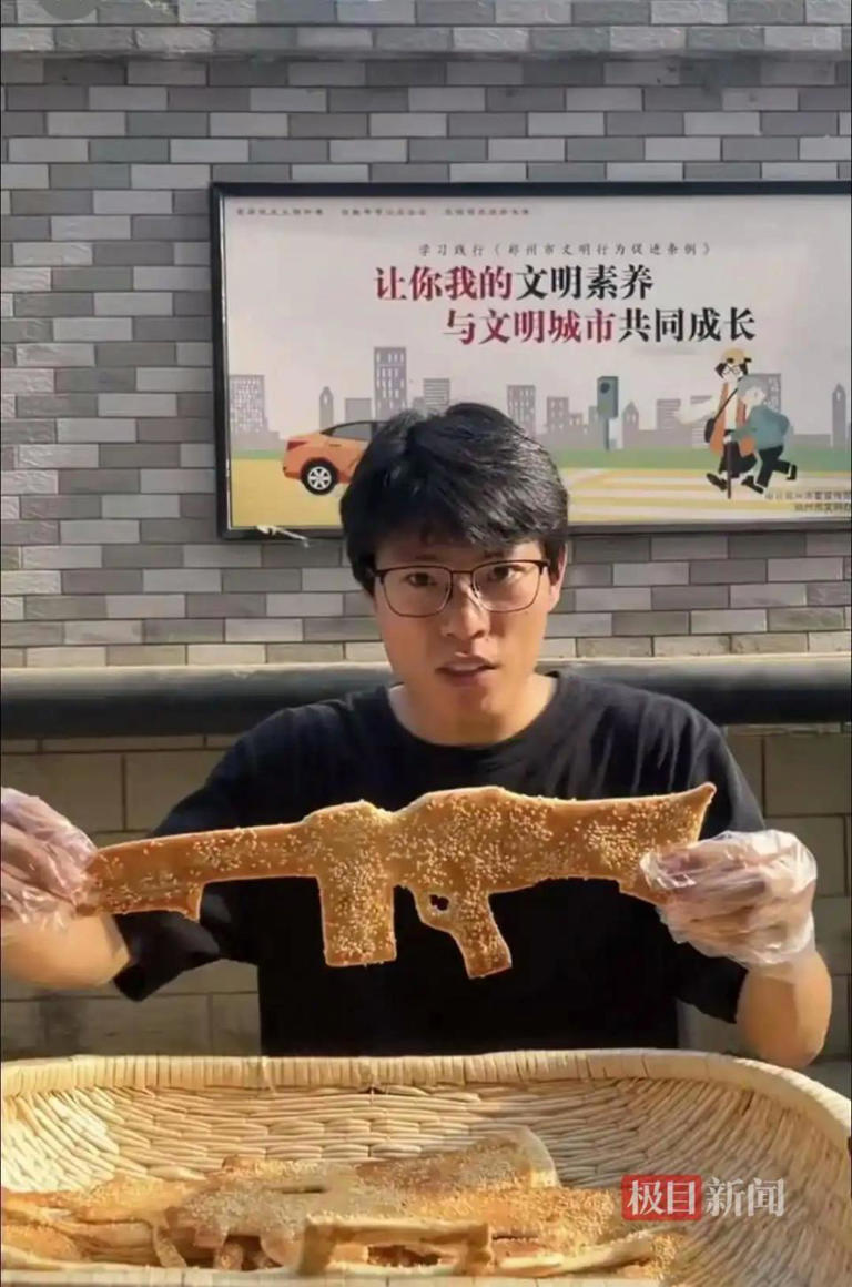 近日,河南郑州博主@去年毕业的小杨在街头售卖一元一个的创意造型烧饼视频在网上爆火,两个月涨粉至42万多。他卖的烧饼既有沙漠之鹰、AK等游戏枪械造型,也涵盖Labubu、Hello Kitty、皮卡丘等卡通形象,被小朋友们戏称为烧饼的“军火库”,争相抢购,一饼难求。