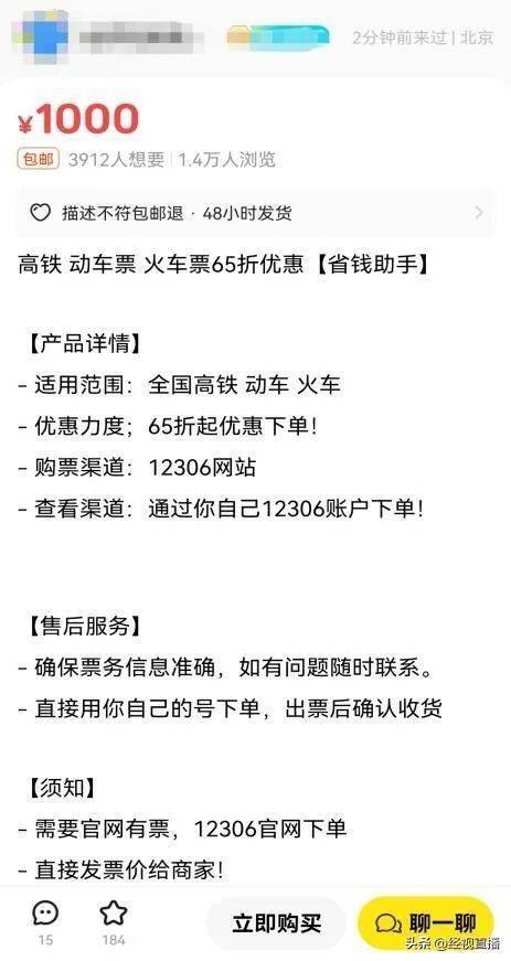 近日,有网友发文询问“闲鱼上65折的高铁票能不能买”,引发关注。