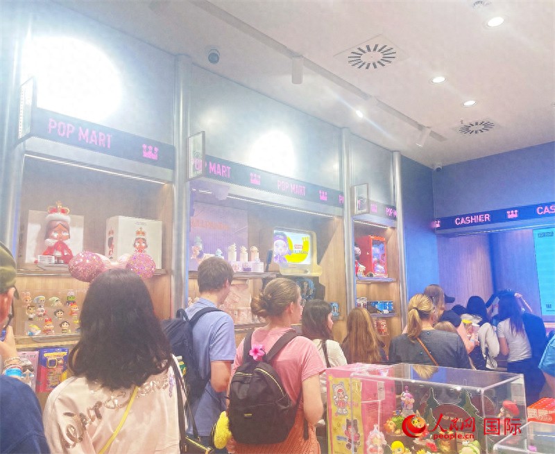 泡泡玛特德国首家门店开业当天,消费者排队结账。人民网记者 刘赫摄