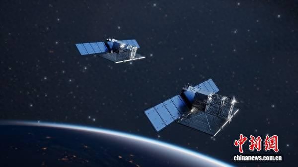 国产L波段雷达干涉卫星陆探1号双站模式示意图。中国科学院国家空间科学中心 供图