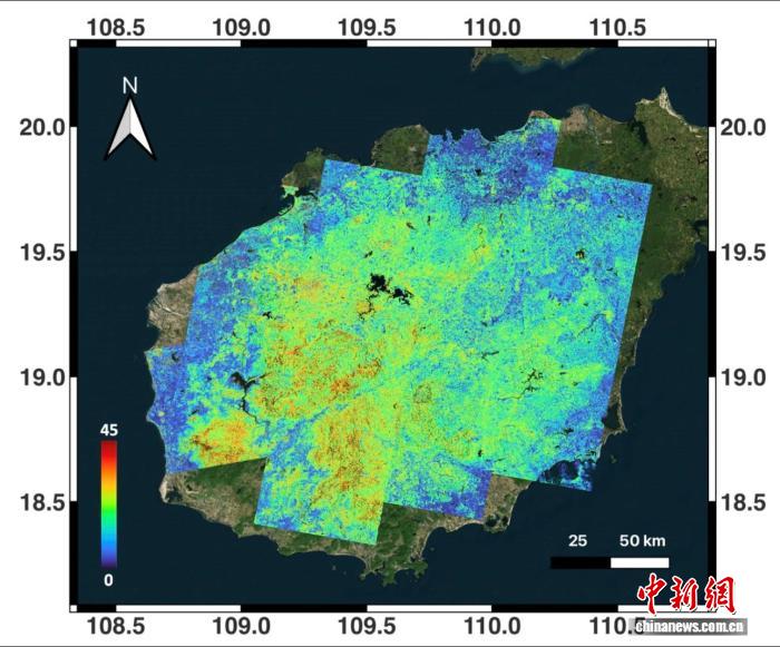 陆探1号生成的海南森林高度产品(10米分辨率)。中国科学院国家空间科学中心 供图